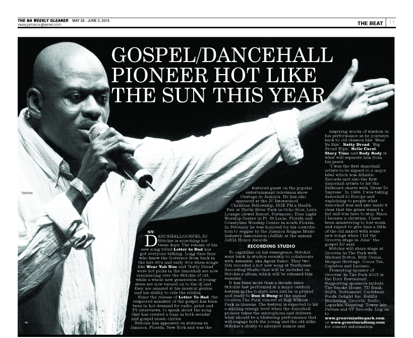 NG20150528_M19.qxd Published June 1, 2015 at 819 × 670 in Anticipation builds for Lt. Stitchie’s appearance on one of New York’s biggest summer festival (@GroovinConcert @kingstitchie) Lt. Stitchie featured in the North American edition of the Gleaner