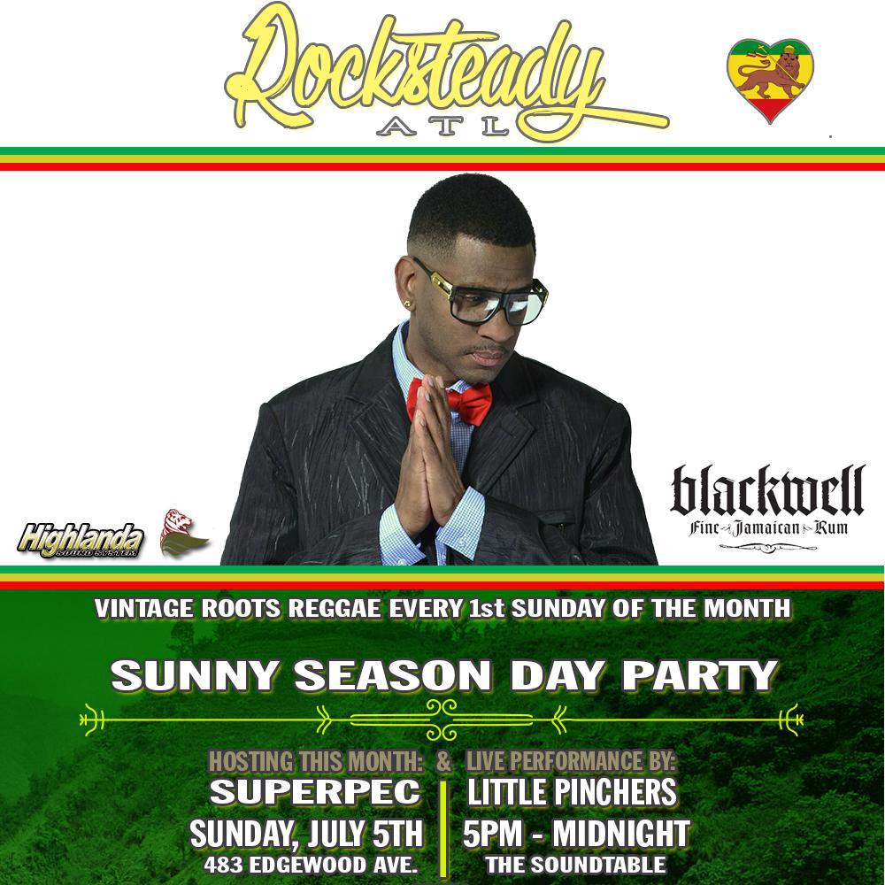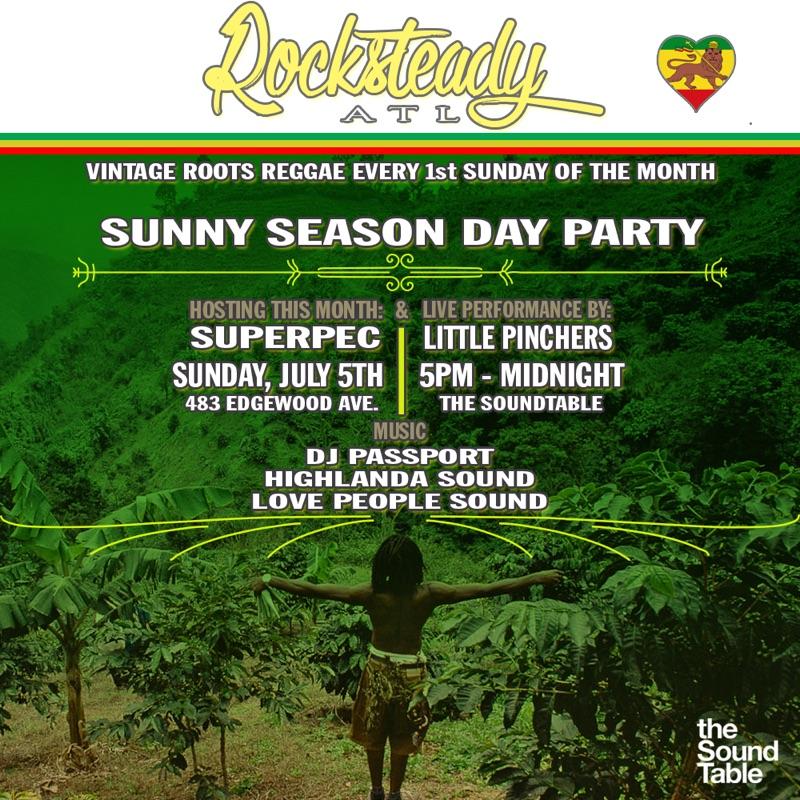 To celebrate International Reggae Day (July 1) and to start the 2015 summer season off with a positive vibration Highlanda.net and The Honorary Citizen present the “Rocksteady ATL Sunny Season Day Party,” on Sunday July 5th at The Sound Table (483 Edgewood Avenue, Atlanta, GA) from 5pm to midnight with host Archangel SuperPEC, live performance by Little Pinchers, and live DJ sets by Isis Swaby, Love People Sound, DJ Passport, and Highlanda Sound.
